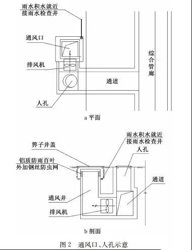 ?。?)其中一部分綜合管廊人員主要出入口與臨街建筑相結合,直接設在室內(nèi)。