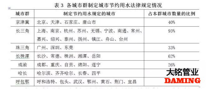 長三角城市群是7個(gè)城市群中節(jié)約用水立法制定最好的城市群,很多城市根據(jù)本地水資源狀況和人口、產(chǎn)業(yè)發(fā)展趨勢制定了節(jié)約用水辦法,并提出了適合本地特點(diǎn)的節(jié)約用水政策措施。